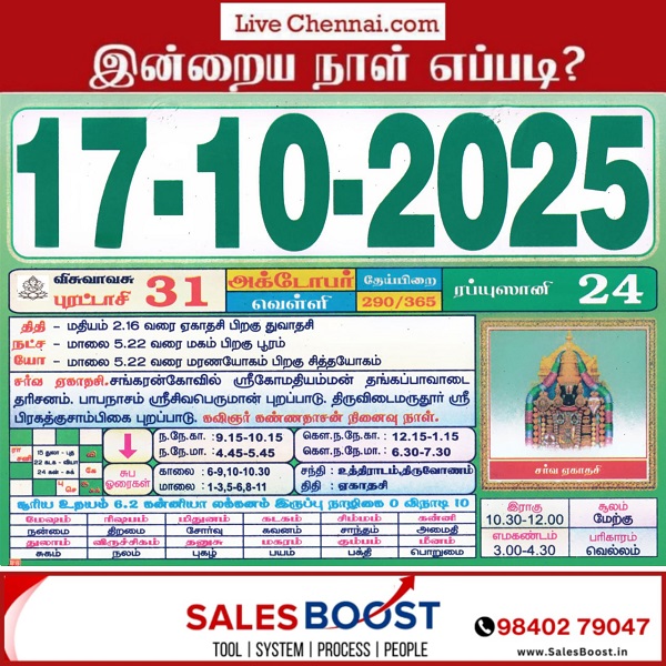October 17, 2025 – Friday | Purattaasi 31 | Visuvavasu Year | |||