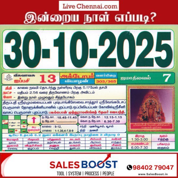 | October 30, 2025 – Thursday | Aippasi 30 | Visuvavasu Year | |||