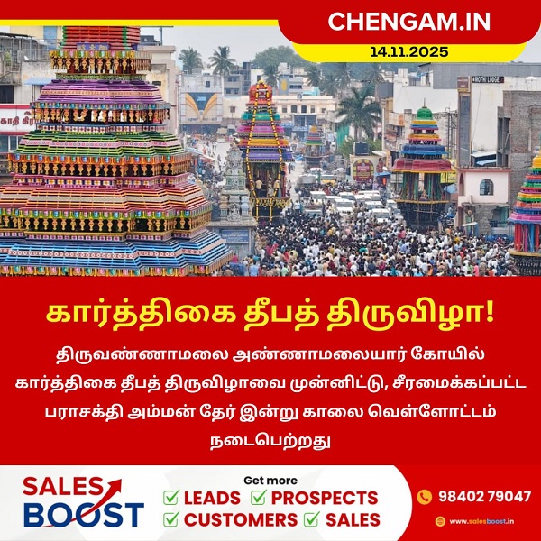கார்த்திகை தீப விழாவை முன்னிட்டு பராசக்தி அம்மன் தேர் வெள்ளோட்டம்!