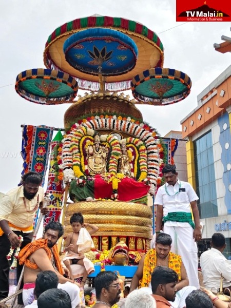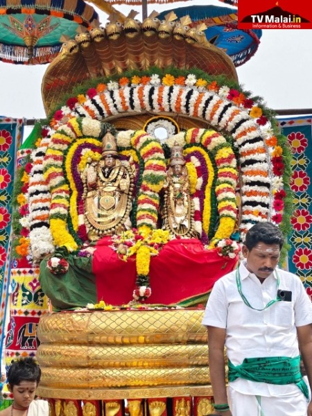 திருவண்ணாமலை அண்ணாமலையார் திருக்கோயிலில் திருக்கார்த்திகை தீபத் திருவிழா நான்காம் நாளான இன்று (27.11.2025) காலை விநாயகர் வெள்ளி மூஷிக வாகனத்திலும், சந்திரசேகரர் உண்ணாமுலை அம்மன் நாக வாகனத்திலும், பஞ்ச மூர்த்திகள் மாட வீதி வலம் வந்து பக்தர்களுக்கு அருள்பாலித்தார்.